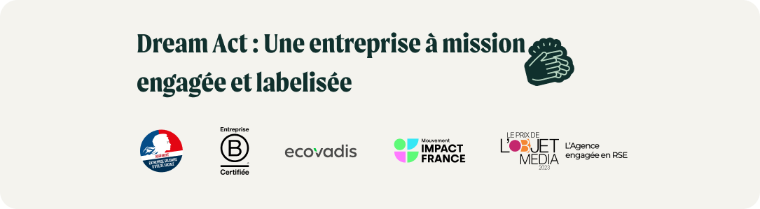Chez Dream Act, notre équipe est là pour vous conseiller l’objet qui respecte votre image de marque, votre budget et vos valeurs.